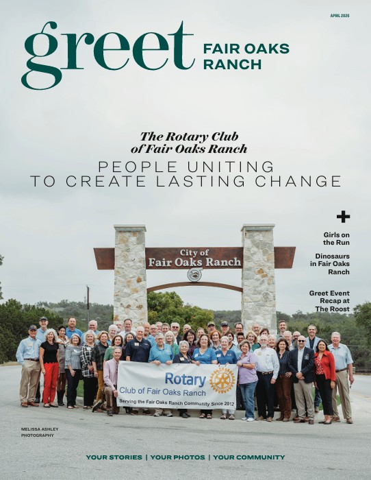 The April 2026 issue of Greet Fair Oaks Ranch magazine features The Rotary Club of Fair Oaks Ranch as its cover story! The article in the monthly publication, which reaches over 4,300 households, spans five pages of in-depth details about the Club and its commitment to serving the Fair Oaks Ranch Community over the years.