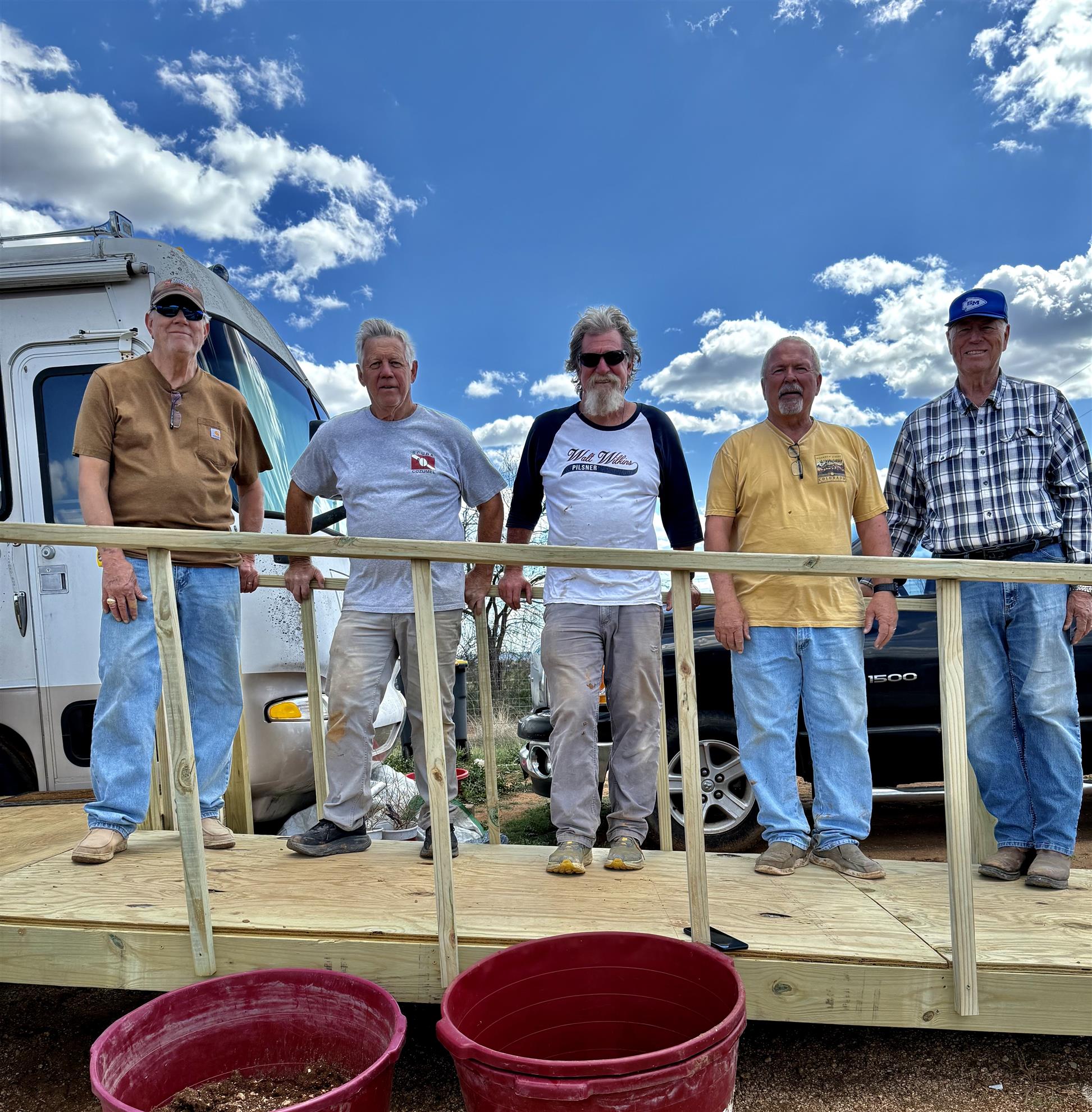 Following up on a request from the Needs Council, Fredericksburg-Nimitz Rotary members built a ramp for a woman having difficulty gaining access to her home. Pictured, left to right were Dave Urbanski, Greg Cavanaugh, Rusty Eberle, Mike Strolle and Ronnie Jung. Photograph by Jimmy Culp. Way to go, guys! Service Above Self!