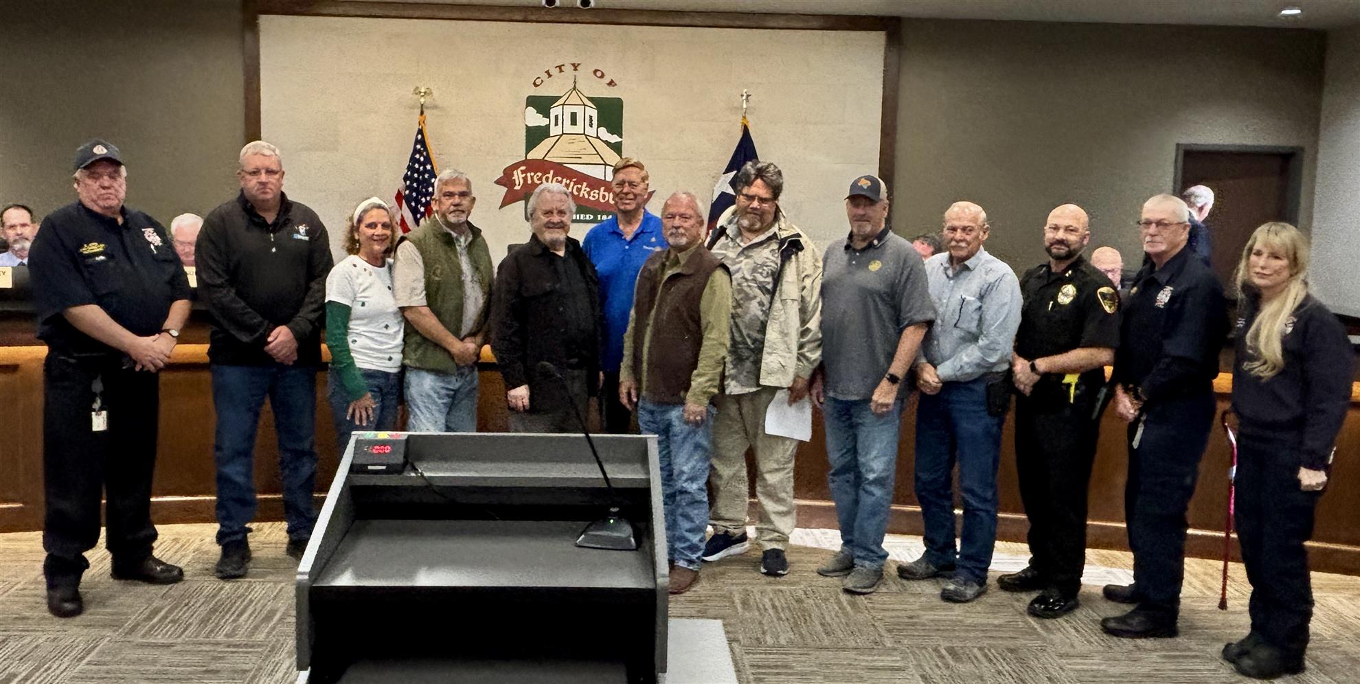 Members of the Fredericksburg Nimitz Rotary along with Fredericksburg VFD and the 100 Club of Gillespie County received recognition at the Fredericksburg City Council meeting for raising money to place AEDs in all local law enforcement vehicles. Nimitz Rotary provided funds for 32 AEDs and the Gillespie County 100 Club provided an additional 4 for Game Wardens.