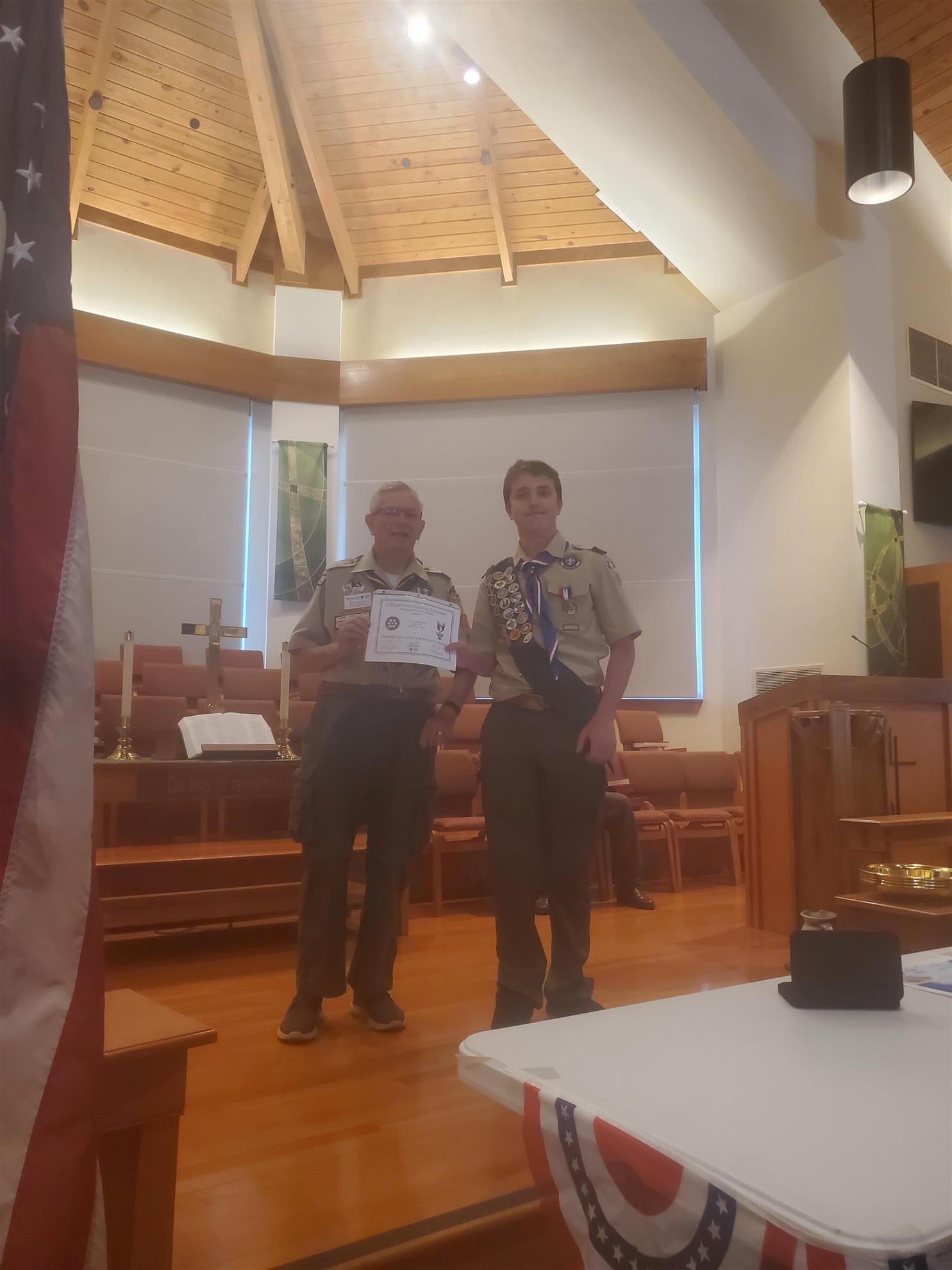Eagle Scout Recognition![]() San Antonio Airport Rotary Club member is the District 5840 Coordinator for the International Fellowship of Scouting Rotarians (IFSR). On August 17, 2024, he presented the IFSR Eagle Scout recognition certificate to Scout Paul b. at his Eagle Scout Court of Honor.