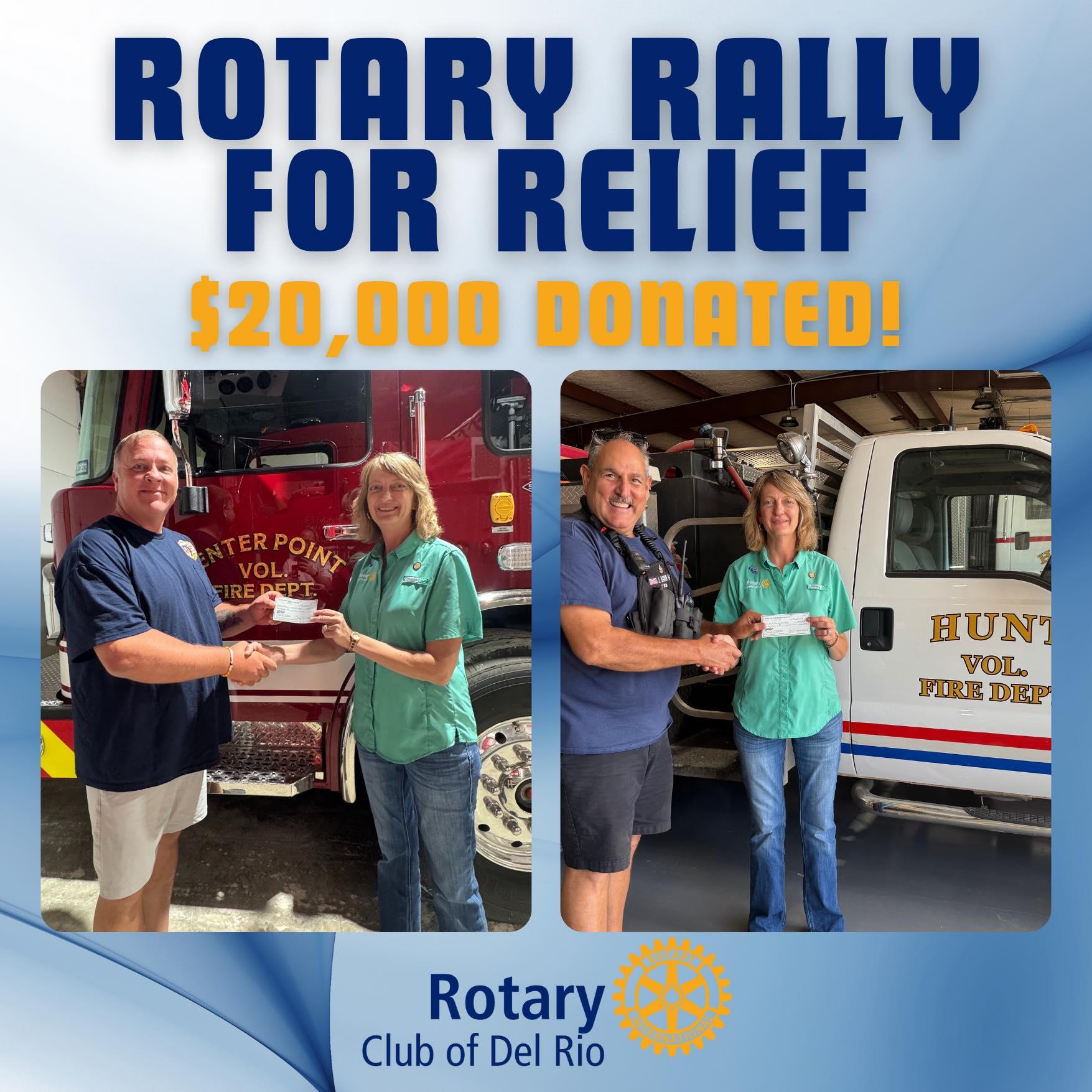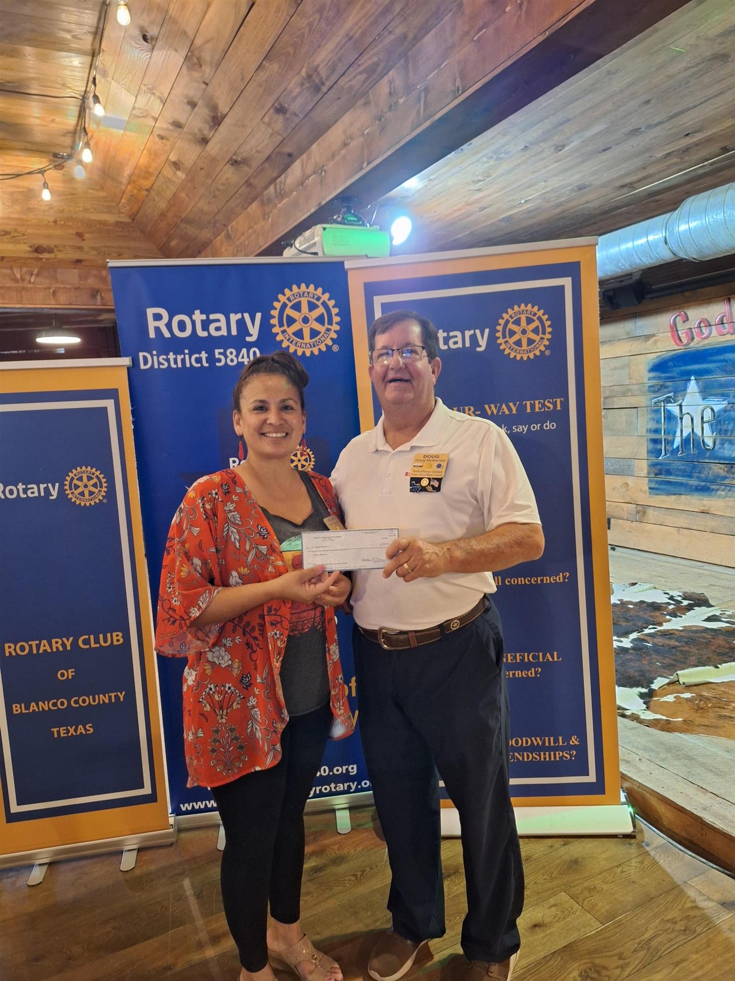 Blanco County Club Donates to Flood Relief![]() To assist with the relief efforts for the flood victims from the July 4th weekend, the board of the Rotary Club of Blanco County made a decision to donate $25 per member out of existing club funds. When it was announced to the club that we would donate the funds, some of the members "stepped up" and donated between $100 and $1000 of their own money on top of the club funds. |