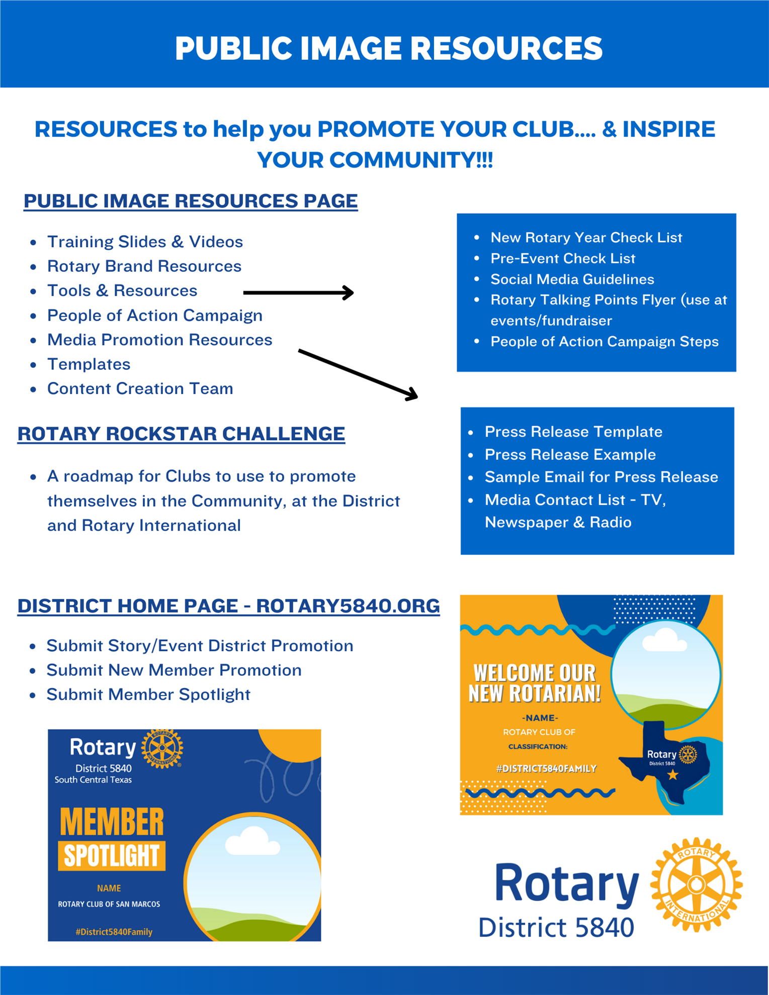 Shine a Spotlight on Your Club with Public Image Resources![]() Strong public image helps Rotary Clubs tell their story, attract new members, and highlight the incredible service projects making a difference in our communities. To make this easier, your District Public Image team has developed a collection of ready-to-use resources designed to save you time and boost your club’s visibility. Here’s what’s available: