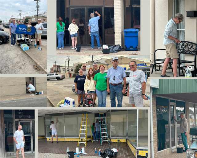 Beeville Rotary Service ProjectThe Beeville Rotary Club Service Committee and friends of Rotary responded to the city's call to action to help wash windows of vacant/abandoned buildings along the historic downtown streets of Beeville. The community and businesses are most grateful to have Rotary's help to improve the appearance of downtown. |