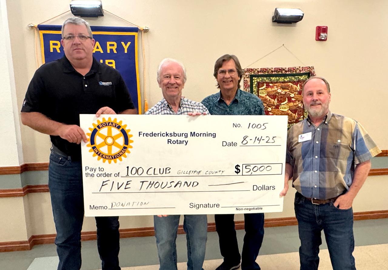 Fredericksburg Morning Donates to Bolster County K-9 Division![]() Rotary Club of Fredericksburg Morning made a $5,000 donation to benefit the K-9 Patrol program of the Gillespie County Sheriff’s Office. The donation was made directly to 100 Club of Gillespie County, a 501c3 charity that financially supports local law enforcement.