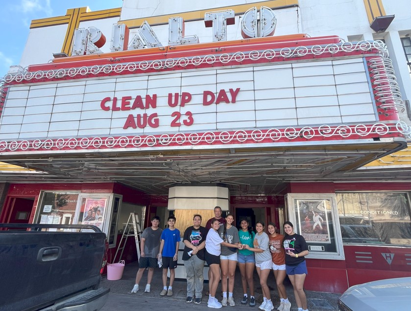 Beeville Rotary and Interact Service Project![]() Several Beeville Rotarians joined forces with local high school students (Interact students) and Hall-Rialto Preservation Association Board Members to clean the interior of the historic Hall-Rialto Theater in downtown Beeville. The theater is undergoing renovation, and regular thorough cleanings help move the project towards completion. The Beeville Rotary Service Committee donated snacks and numerous bottles of water to the volunteers. |
