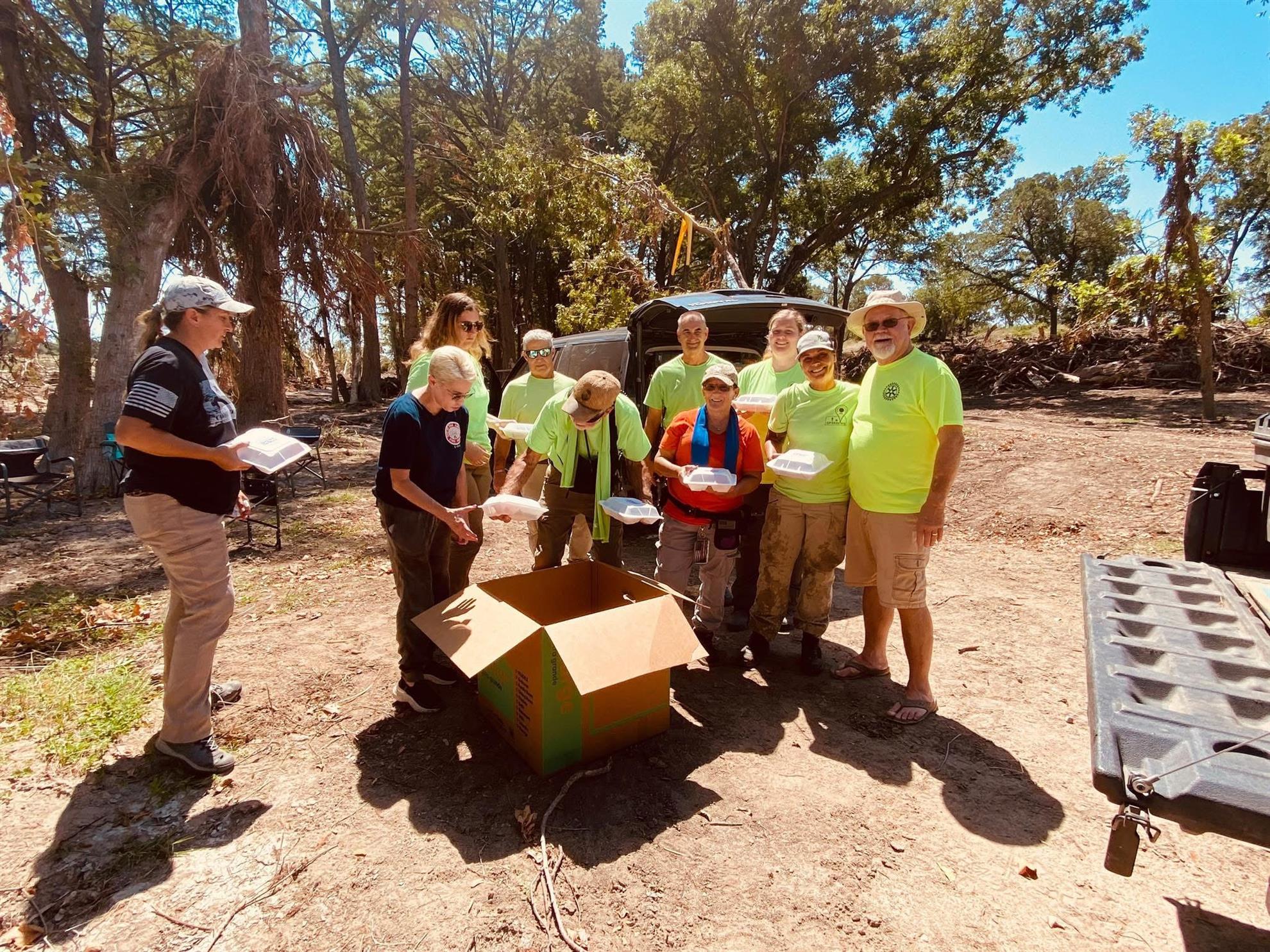 Delivering MealsLocal Rotarian Jimmy Hutto was out delivering meals prepared by Mercy Chefs to flood disaster volunteers in Hunt Texas.