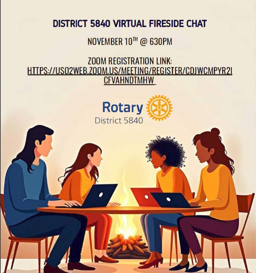 District 5840 Virtual Fireside Chat – November 10th @ 6:30 PM