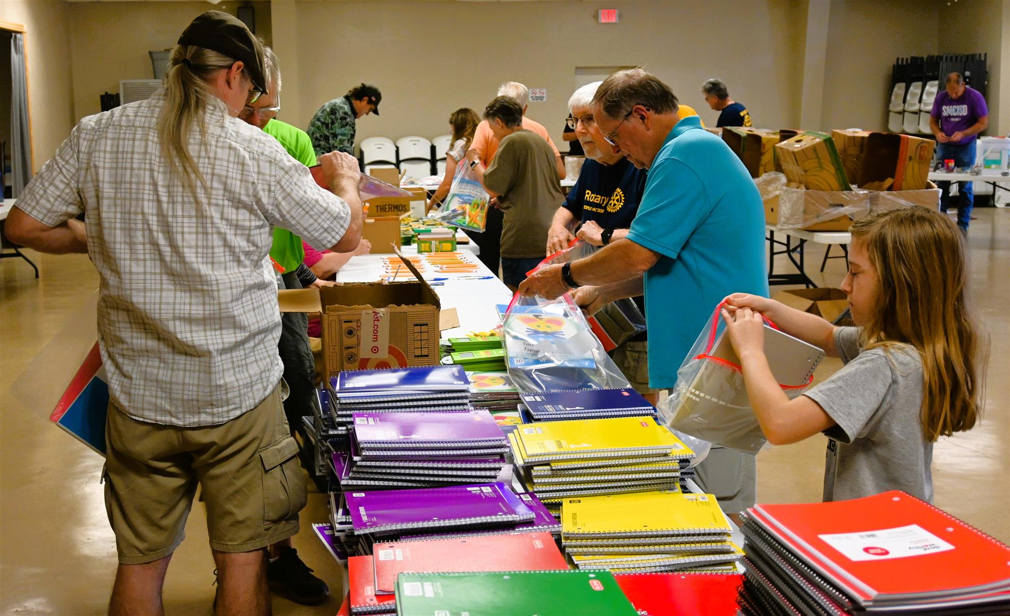San Marcos Service Clubs Join Forces![]() Rotary's Celebrate Community Week was held the week of September 14-20, 2025, as a collaborative effort with Kiwanis, Lions, and Optimist International to encourage joint community service projects. In San Marcos, Rotary joined with Kiwanis and two Lions Clubs to pack food for School Fuel, a nonprofit that provides food for the weekend for needy children with school meals are not available.